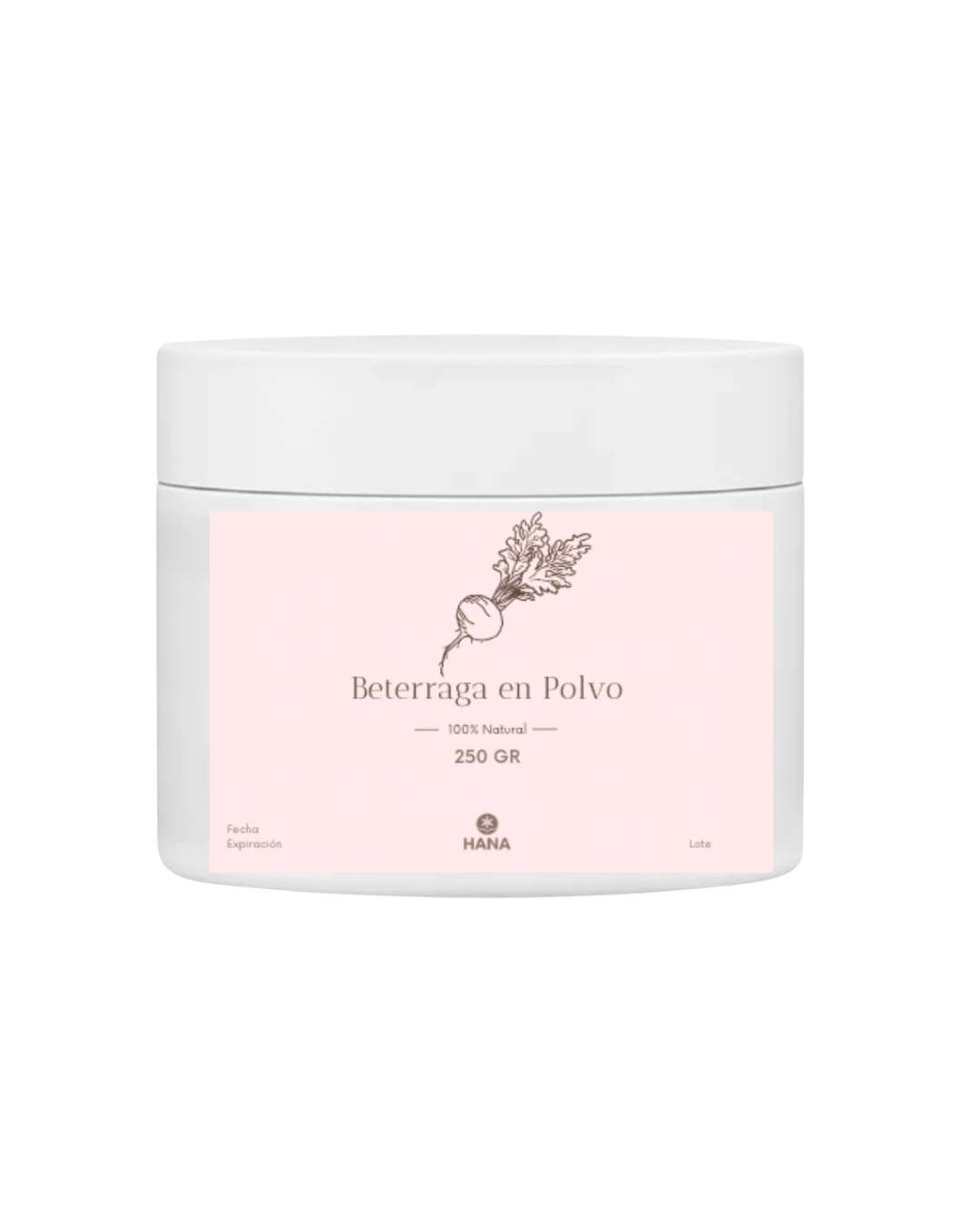 La beterraga en polvo es un ingrediente vegetal de origen natural ampliamente utilizado en formulaciones cosméticas y de cuidado personal por sus propiedades antioxidantes, revitalizantes y colorantes naturales. Actúa ayudando a proteger la piel frente al estrés oxidativo, aportar luminosidad y mejorar la apariencia general del cutis. Además, se emplea como pigmento natural para brindar tonos rosados o rojizos suaves en productos como mascarillas faciales, jabones, bálsamos labiales y cosméticos artesanales. Es especialmente valorada por su alto contenido de nutrientes y su capacidad para realzar el aspecto saludable de la piel.